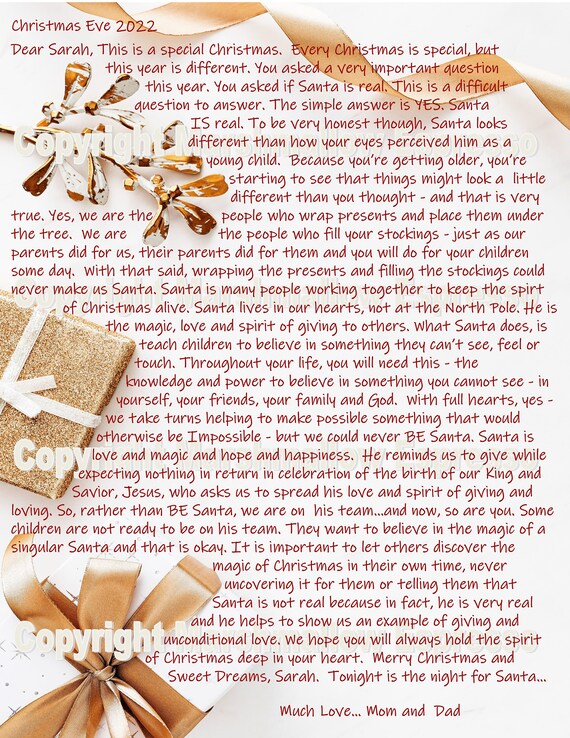 Is Santa Real Special Keepsake Letter For Your Child When The Question Is Asked Christian Based Letter And Explanation Mentions Jesus Etsy