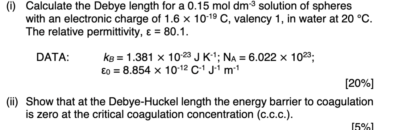 Solved I Calculate The Debye Length For A 0 15 Moldm 3 Chegg Com